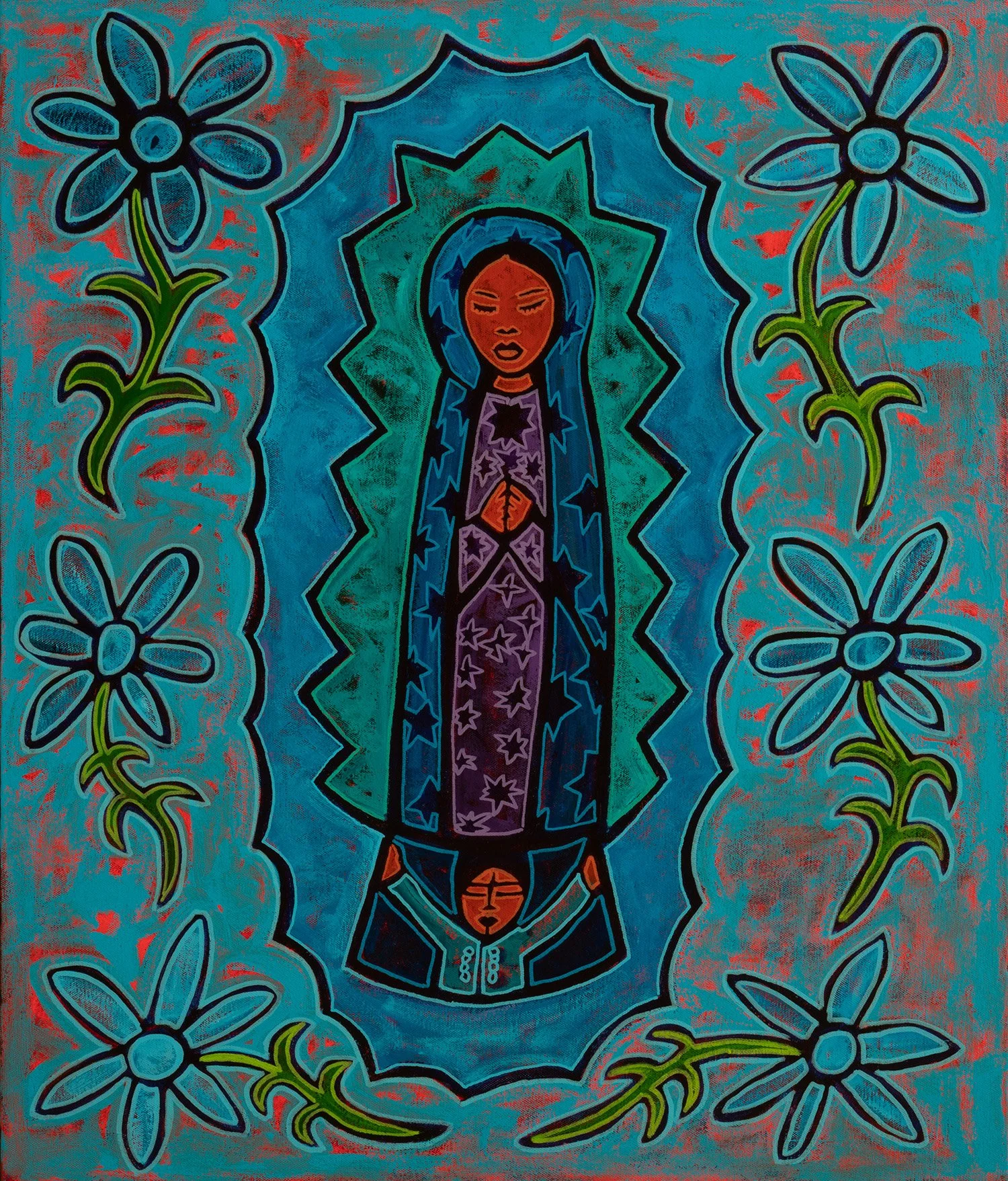 guadalupe, 2021, acrylic and enamels on canvas, 23x27"